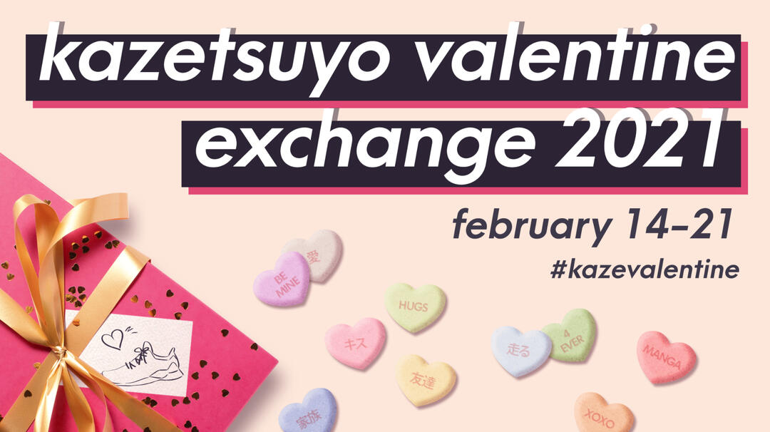 The Kazetsuyo Valentine Exchange is a fan event that celebrates our love for Run with the Wind and its wonderful fan community around the world! It’s a way to get to know each other a little better and to make personalized gifts for each other in the form of art and writing ❤︎Although this is a Valentine's Day event, romance is optional! Ships are welcome, but so are general pieces that focus on individual characters, friendships, or found families! ❤︎For any news and updates follow us on Twitter, where we’ll also be retweeting and promoting all gifts during the exchange!